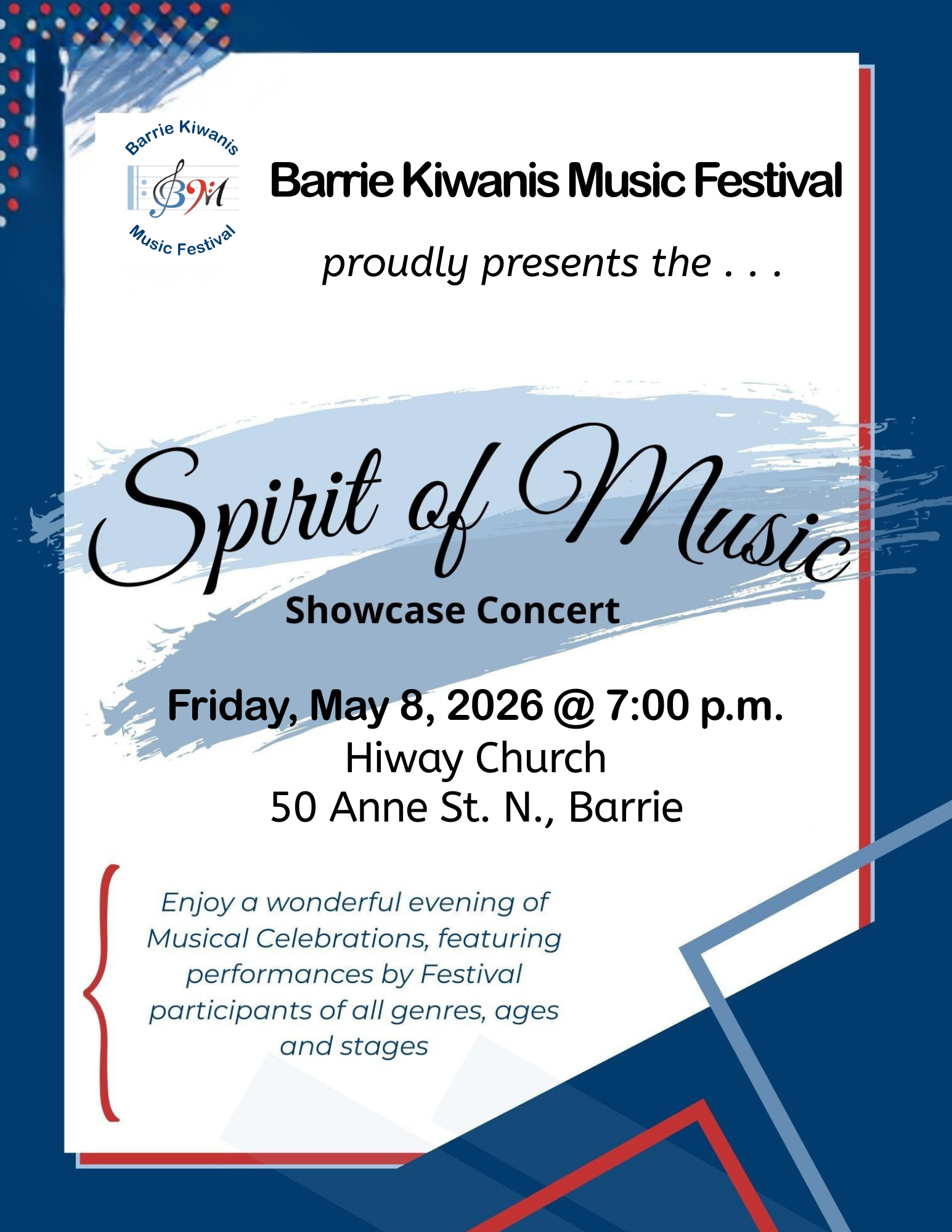 This year's Spirit of Music Showcase will celebrate the wonderful Musical cross-section that our Festival represents! Come see performances from all ages and stages and across all the disciplines in our Festival. It's sure to be a great celebration of our wonderful Community of Music!